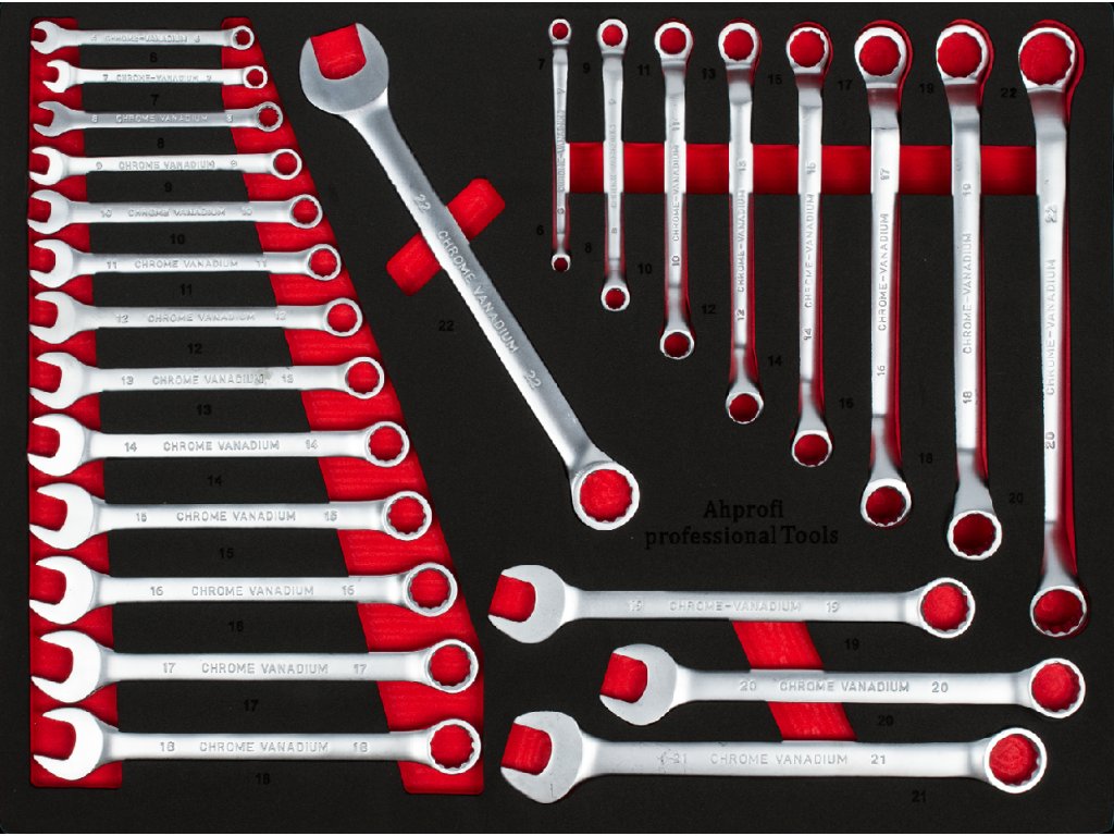 | 17 ks | Očkoploché klíče: 6, 7, 8, 9, 10, 11, 12, 13, 14, 15, 16, 17, 18, 19, 20, 21 a 22 mm. |