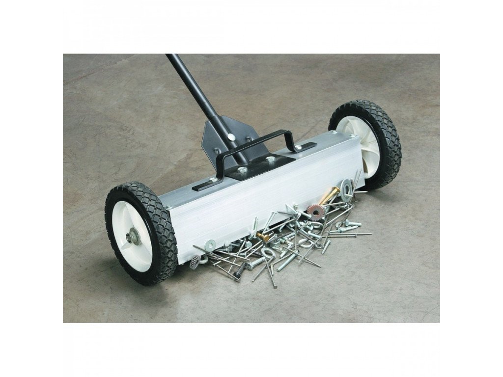 Magnetický smeták určený pro úklid v průmyslových provozech nebo skladech, kde se pracuje s drobným magnetickým materiálem.
