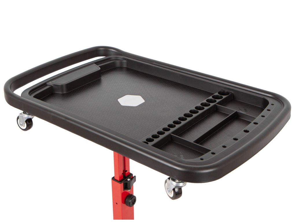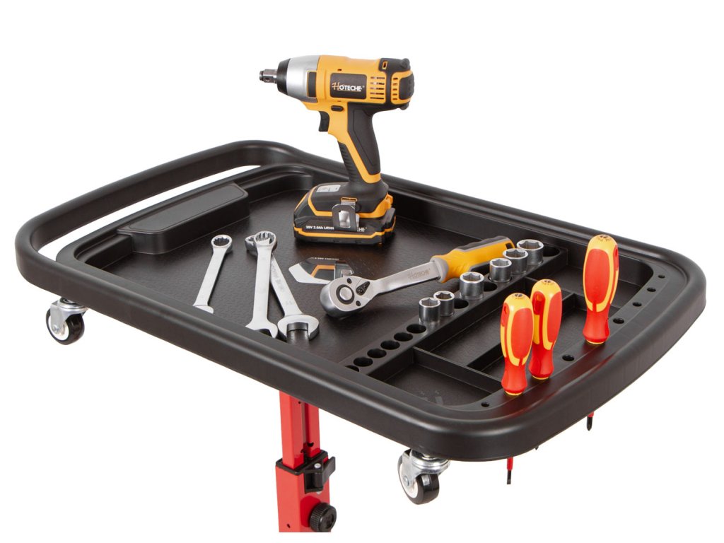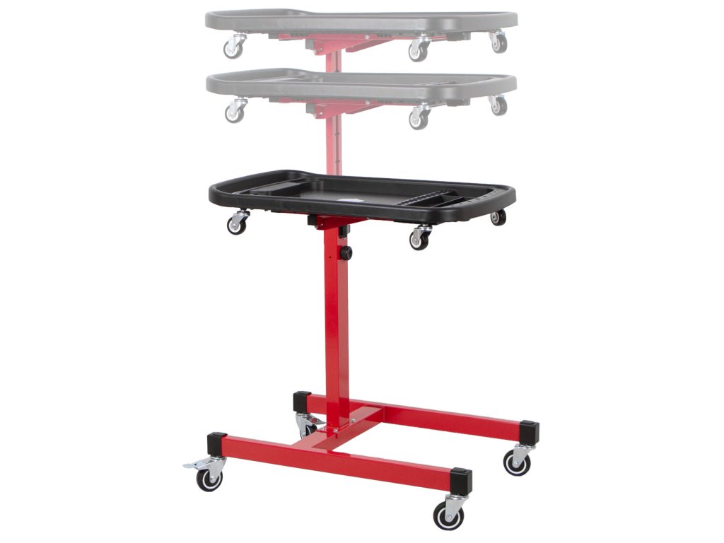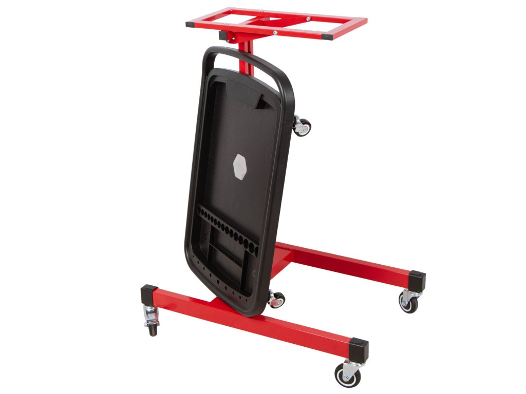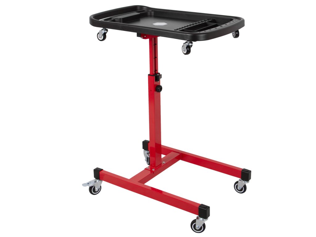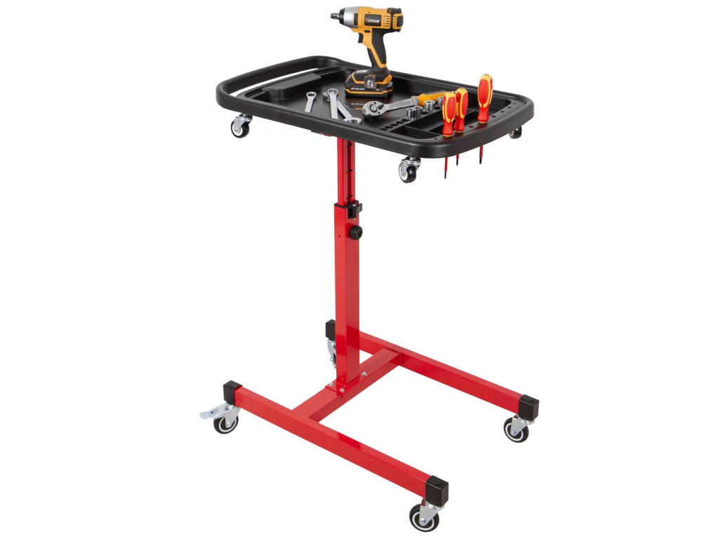 Pojízdný odkládací montážní stolek pro organizaci nářadí a drobných součástek při práci v dílně, garáži i mimo ni.