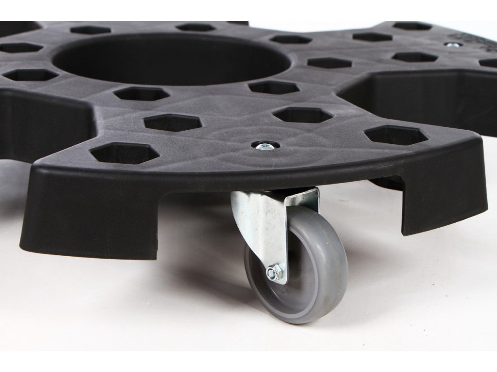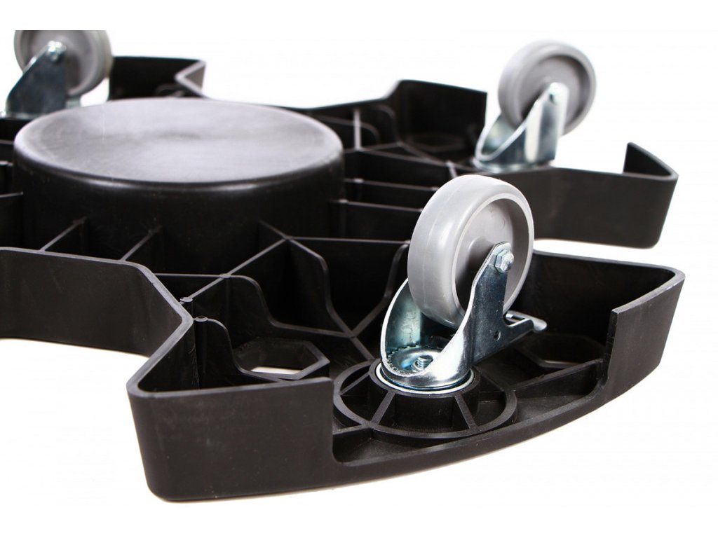 Plošina má 4 otočná kolečka a jedno je vybaveno brzdou pro zvýšení bezpečnosti.