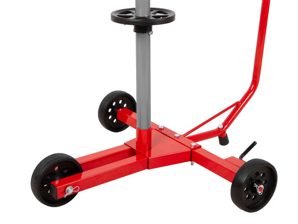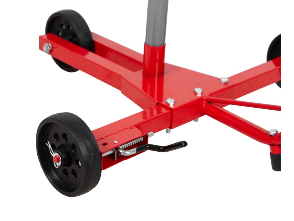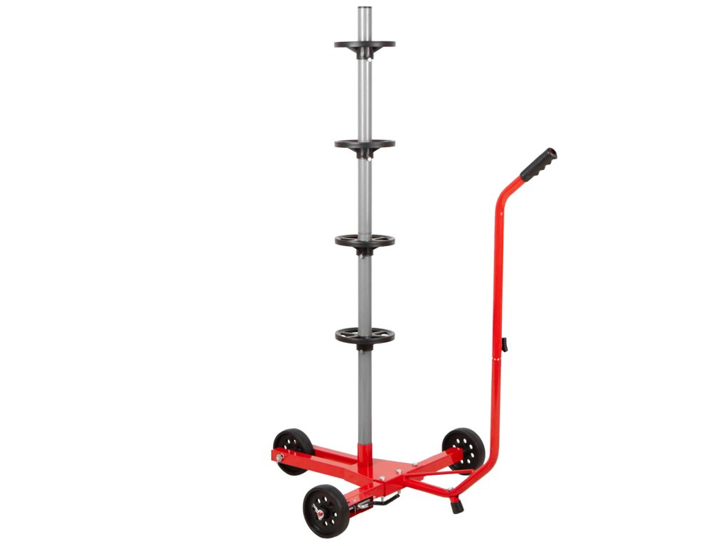 - Pojízdné provedení: Se třemi koly s hladkým chodem je stojan snadno přemístitelný. Zjednodušuje tak manipulaci s pneumatikami v dílně nebo garáži.