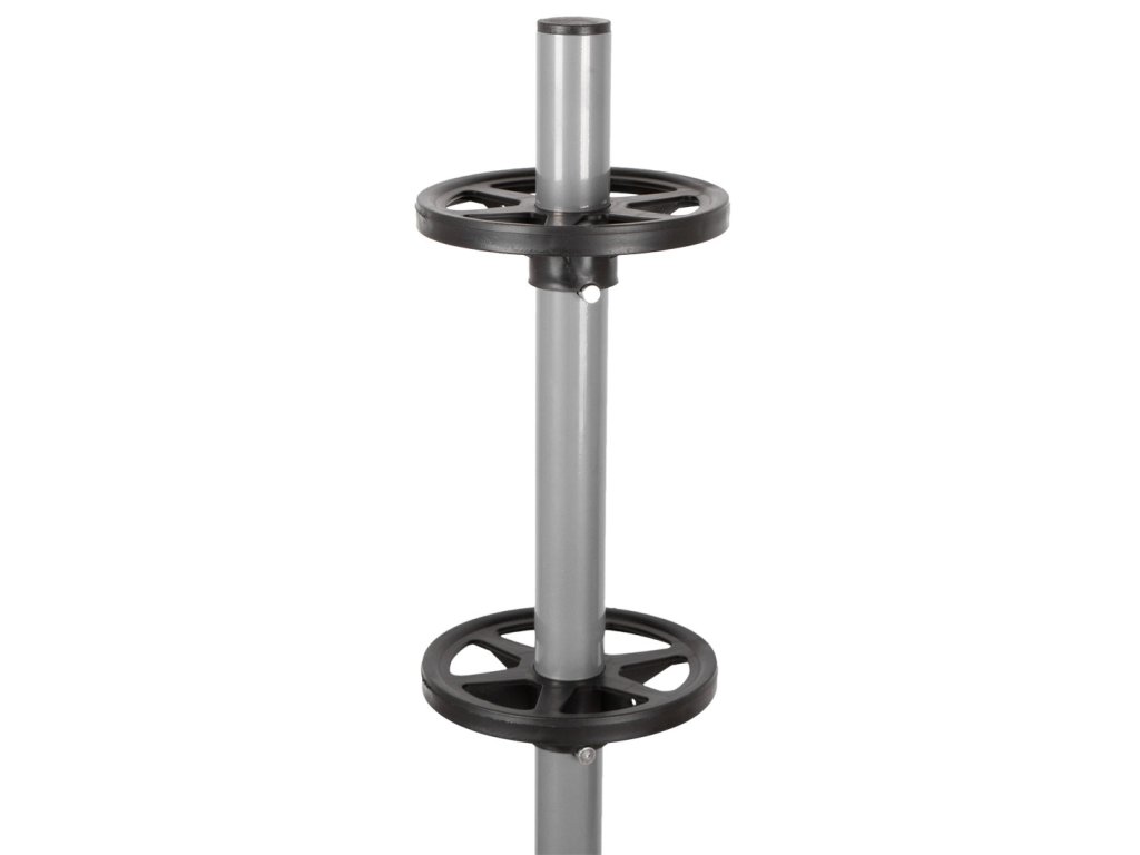 - Stabilní konstrukce: Podvozek stojanu z masivní oceli a trubky z hliníku zajišťují jeho stabilitu a odolnost i při plném zatížení.