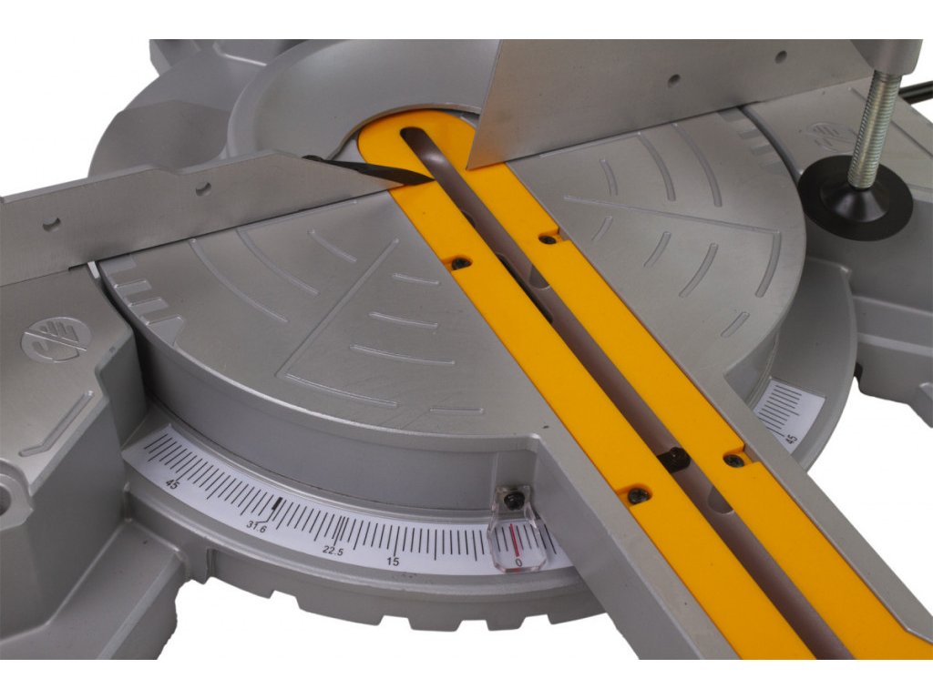 Tento stroj nabízí možnost nastavení úhlů u otočného talíře 45° vpravo i vlevo a u pilového kotouče až 45° do pravé strany.