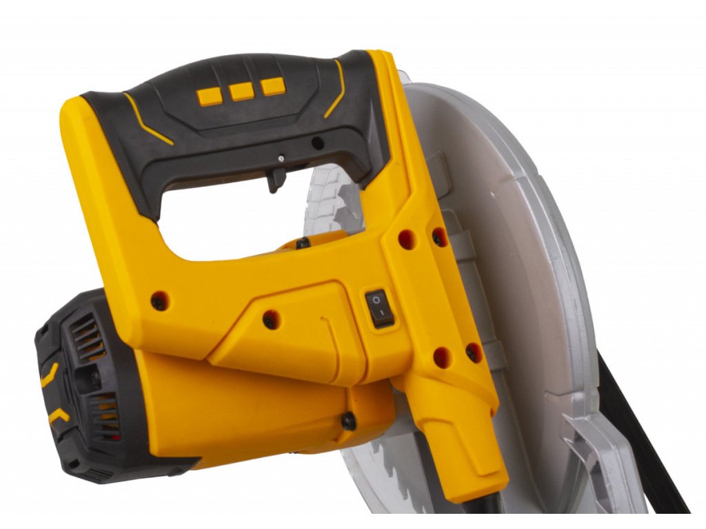 Výkonná pokosová pila od značky Hoteche bez problému zvládne nejnáročnější řezací práce v dílně nebo garáži.