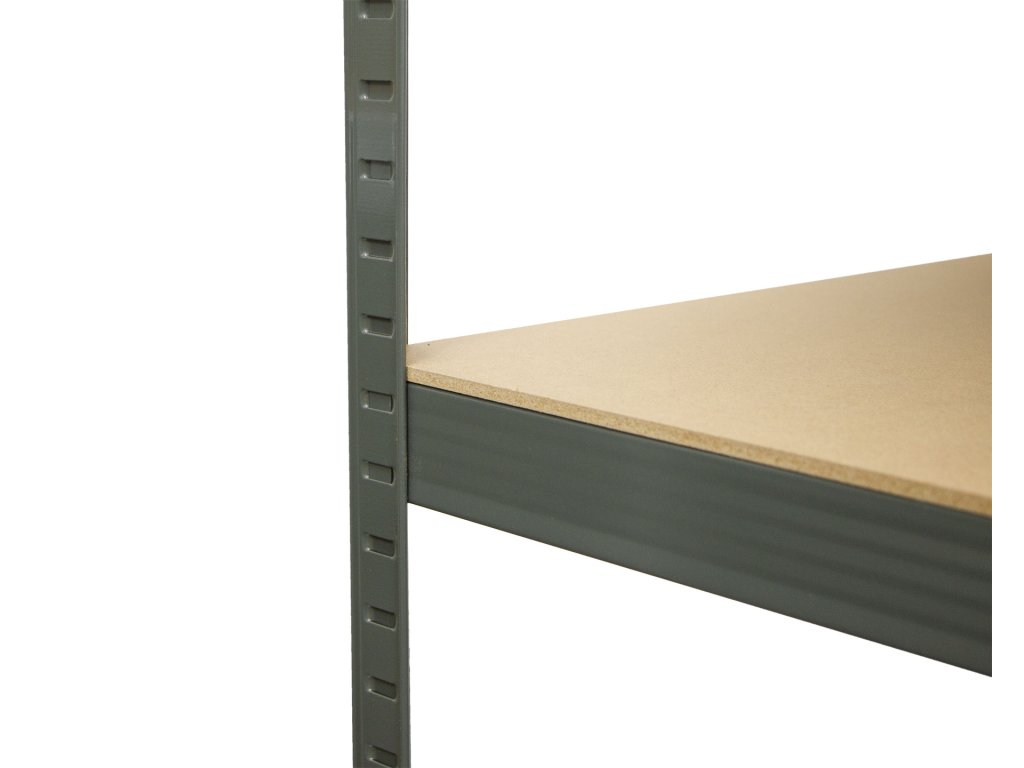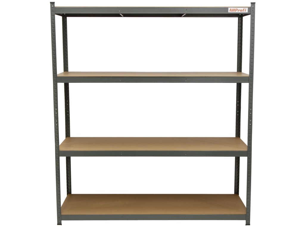 Regál je tvořen 4 kovovými stojinami z plechu o tloušťce 1 mm, které zajišťují výbornou pevnost a stabilitu i při větším zatížení.