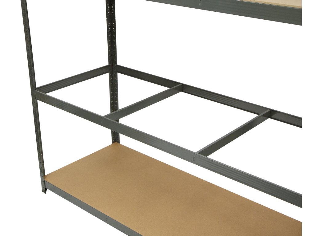 Tento široký a policový regál je ideální volbou všude tam, kde je potřeba velký úložný prostor.