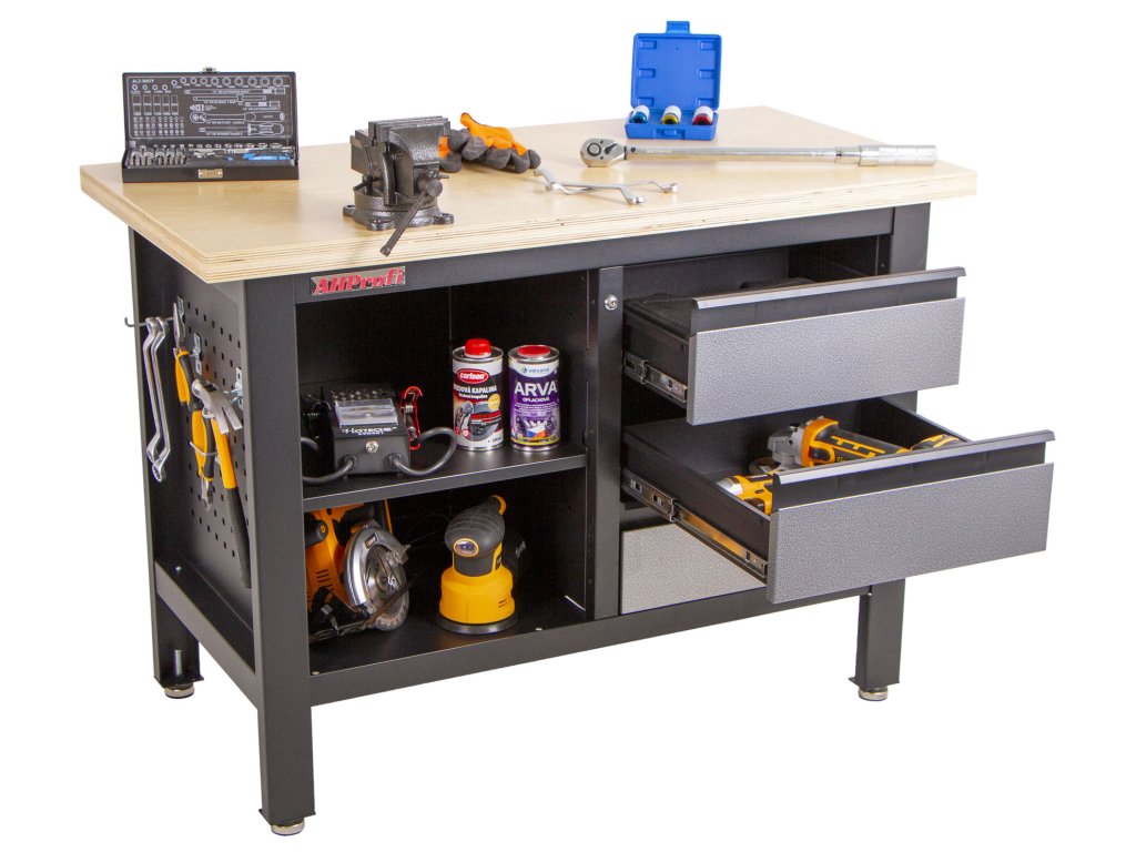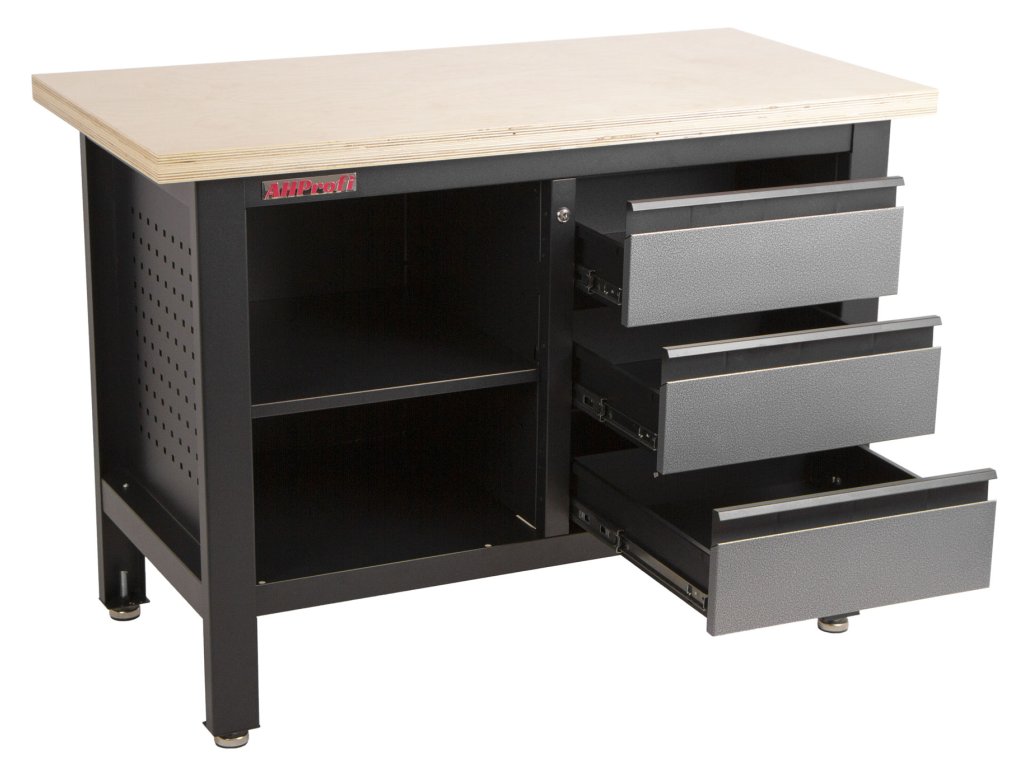 Do šuplíků můžete uskladnit svoje nářadí jako např. utahovák nebo úhlovou brusku.