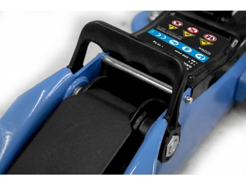 Zdvih nosného ramena 85 - 330 mm, profilovaný zátěžový talíř Ø 60 mm, plynulé spouštění břemen pootočením výpustného ventilu.