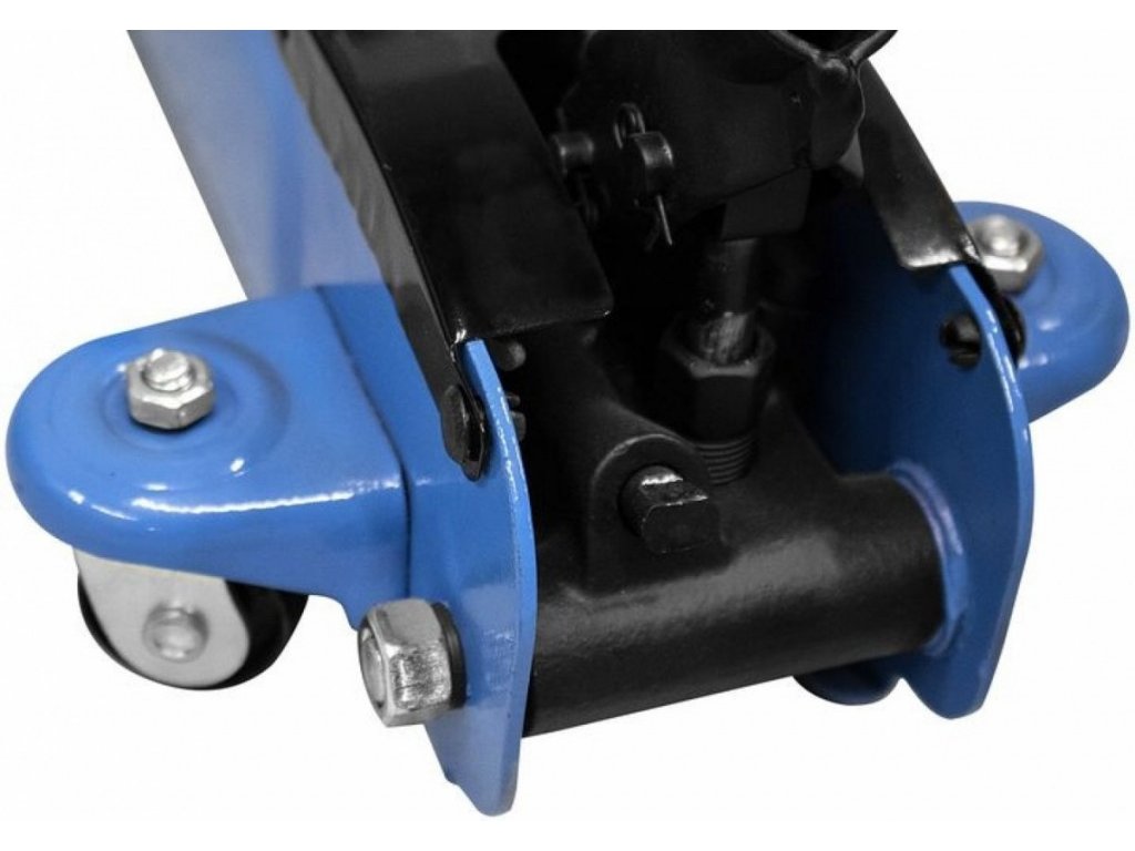 Pojízdný hydraulický hever, určený ke zdvihání vozidel se sníženými podvozky (→ max. nosnost: 2 tuny).