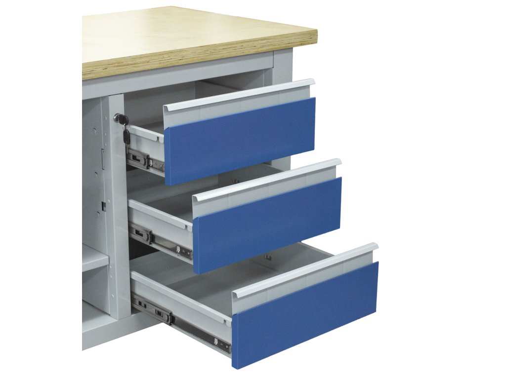 - 3 zásuvky s kuličkovými ložisky a skříňka - vše uzamykatelné!