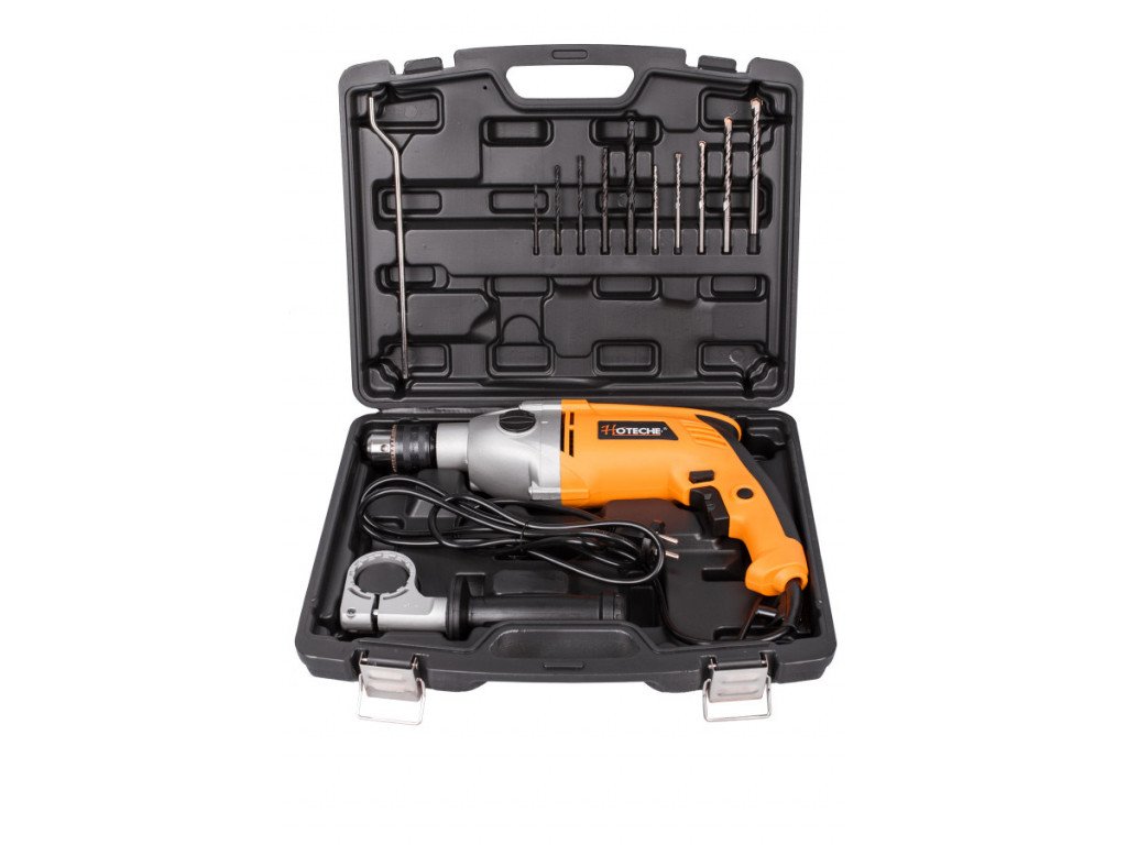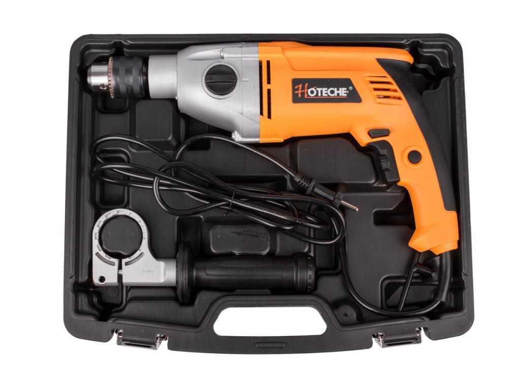 Příklepová vrtačka značky Hoteche s příkonem 1050 W vyvine až 3200 ot./min. a 4800 úderů/min. na prázdno. Vysoký výkon vrtačky si zvládne poradit s běžnými materiály jako je dřevo, kov, plast, atpd., s funkcí příklepu si snadno poradí i s vrtáním do zdiva a stavebních materiálů. Vrtačka zvládne max. ø vrtu 25/40 mm do dřeva, 13/20 mm do betonu a 8/13 mm do oceli.