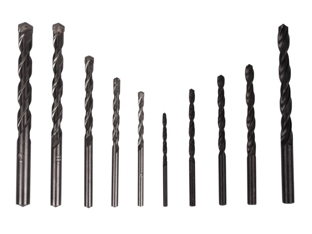 V balení naleznete také 10 kusů vrtáků. 5 kusů pro vrtání do kovu: 2x80, 4x76, 5x84, 6x91, 8x117 mm a 5 kusů pro vrtání do betonu: 4x74, 5x83, 6x97, 8x118, 10x118 mm.