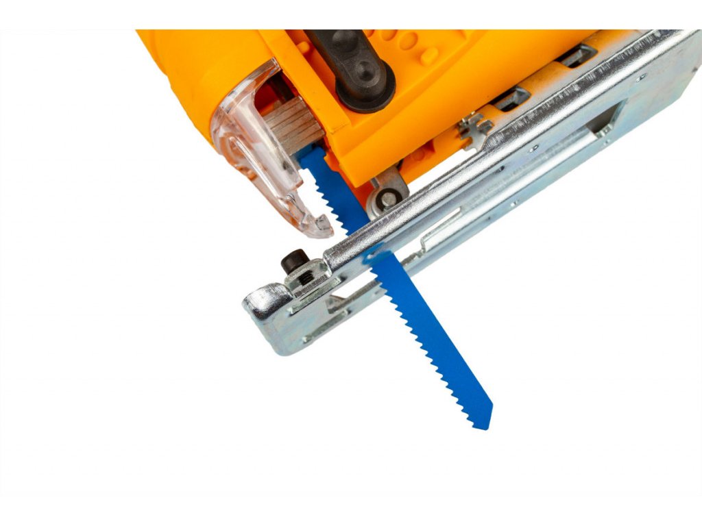 Přímočará pila je vhodná nejen pro přímé řezy, ale i pro vyřezávání oblouků. Díky sklopné funkci základny je navíc možné provádět i pokosové řezy až do 45°.