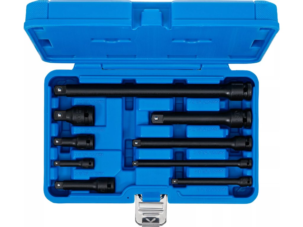 Sada 9 ks kovaných prodlužovacích nástavců se čtyčhranem 1/4", 3/8", 1/2".