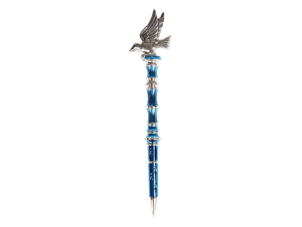 S kouzelnickou modro-stříbrnou propiskou s Havraspárským (Ravenclaw) kolejním zvířetem havranem bude každá vaše hodina výuky v Bradavicích mimořádná. Propiska úžasně napodobuje čarovnou hůlku v designu kolejí, do kterých chodily například Luna Lovegood či Cho Chang, kamarádky Harry Pottera. Nádherná kovová propiska je leskle smaltovaná, s postříbřenými konci a bude opravdovým šperkem vašeho stolu. Nemáte do čeho psát? Vybírejte z pěkných tematicky laděných notesů a zápisníků.Doplňkové parametry