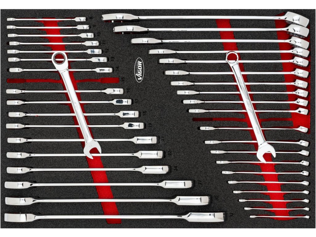 Sada ráčnových a očkoplochých klíčů VIGOR V6807N – 40 ks v pěnové výplni