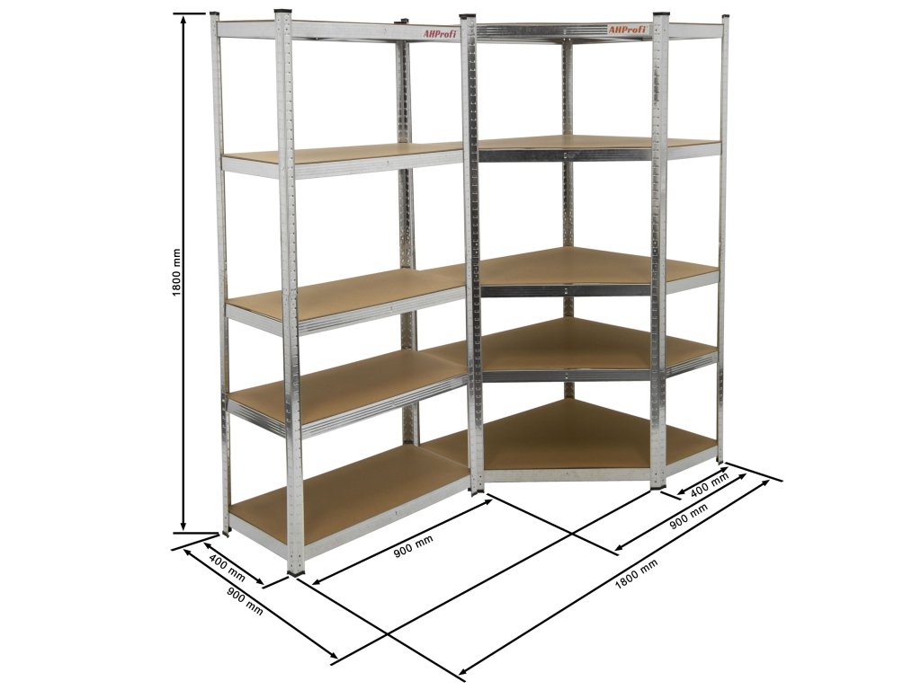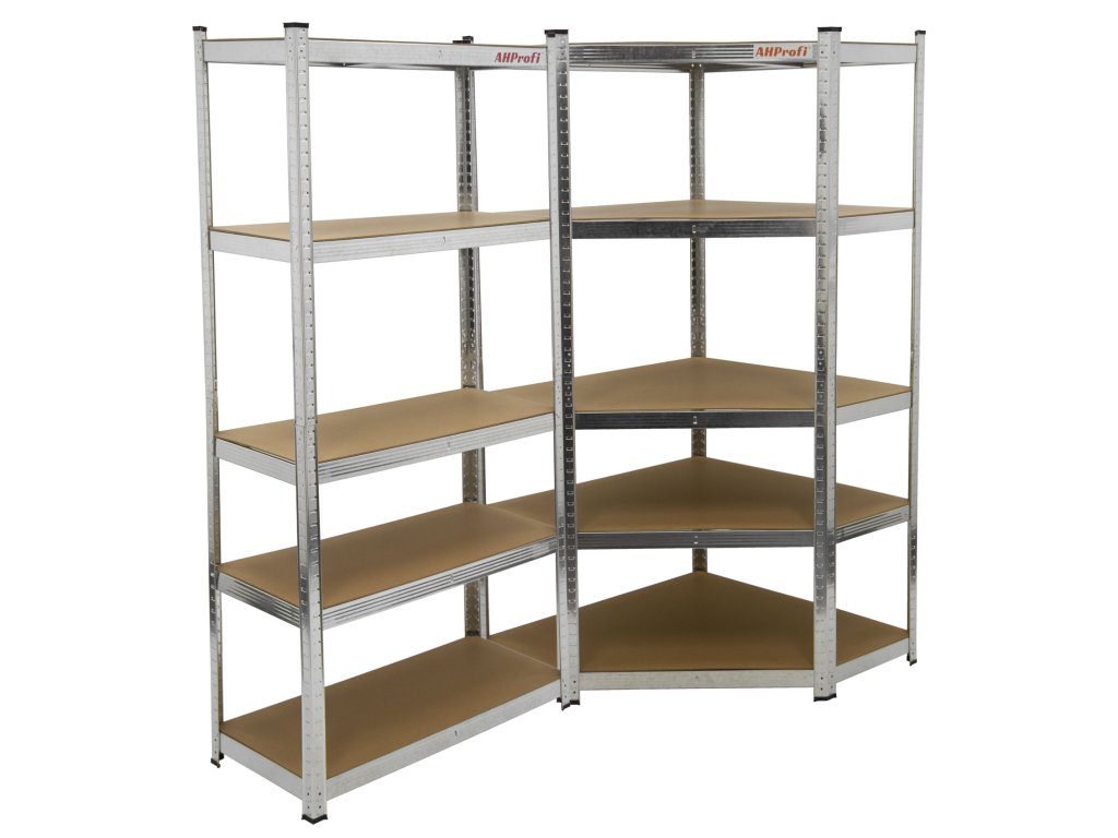- Kompletní rohový regálový systém – 2 propojené díly