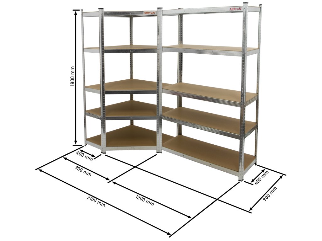 Regálový systém STANDARD - rovný + rohový regál, 2100 x 900 x 1800 mm
