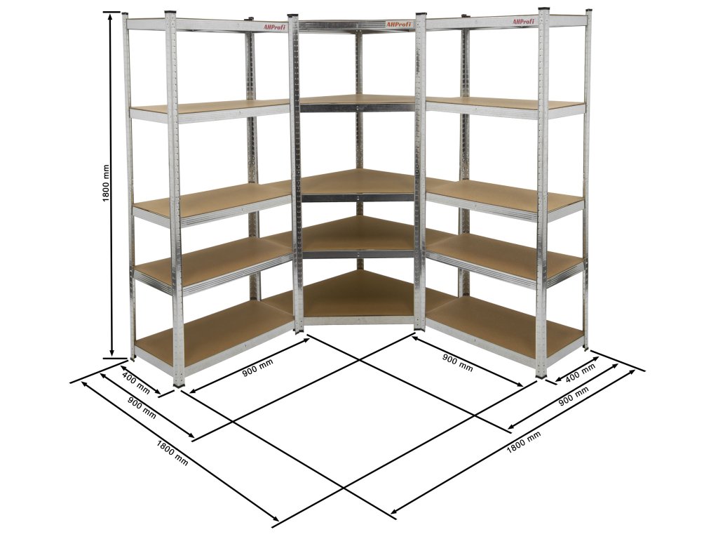 Rohový regálový systém STANDARD - 1800 x 1800 x 1800 mm, 3 díly
