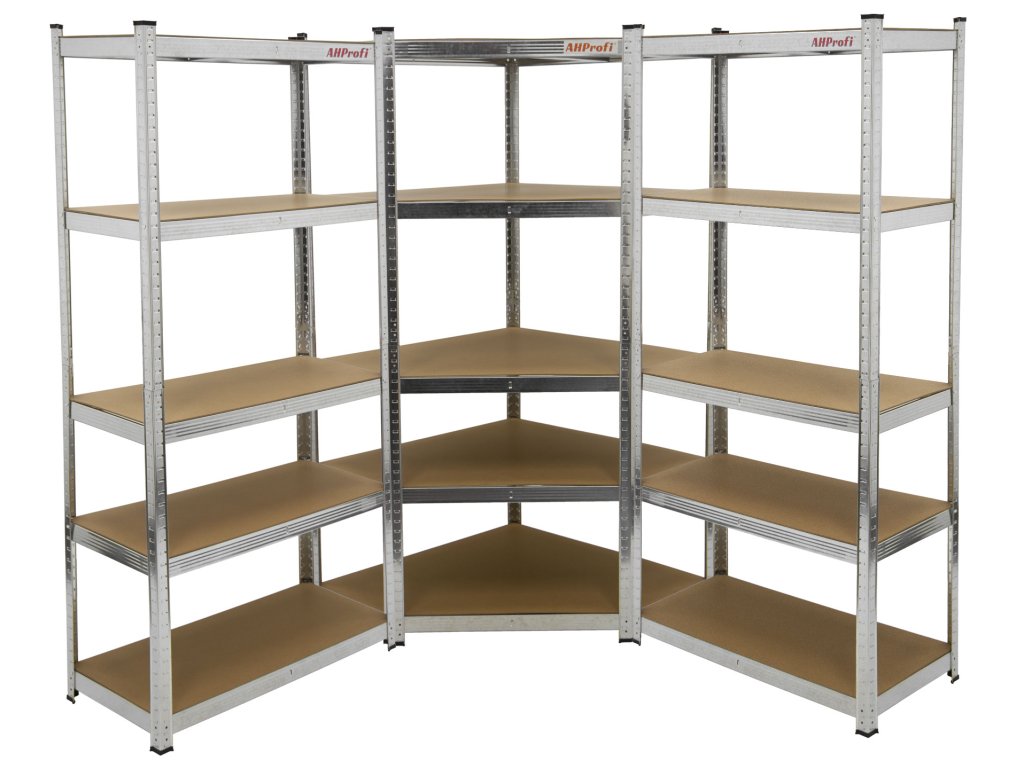 Tento regálový systém přináší maximálně efektivní řešení pro uspořádání prostoru v rohu místnosti. Sada se skládá z rohového regálu a 2 rovných regálů , díky čemuž vytvoříte ucelenou úložnou sestavu. Využití najde v domácnostech, dílnách, garážích, technických místnostech, skladech i v obchodech.