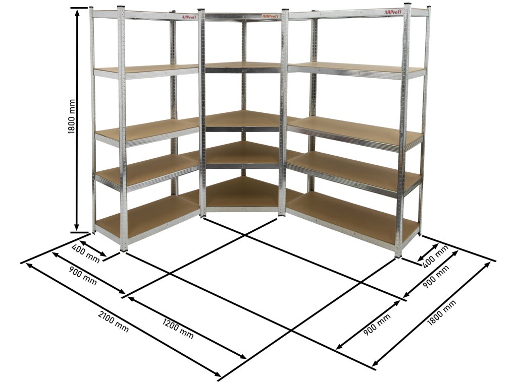 Rohový regálový systém STANDARD - 2100 x 1800 x 1800 mm, 3 díly