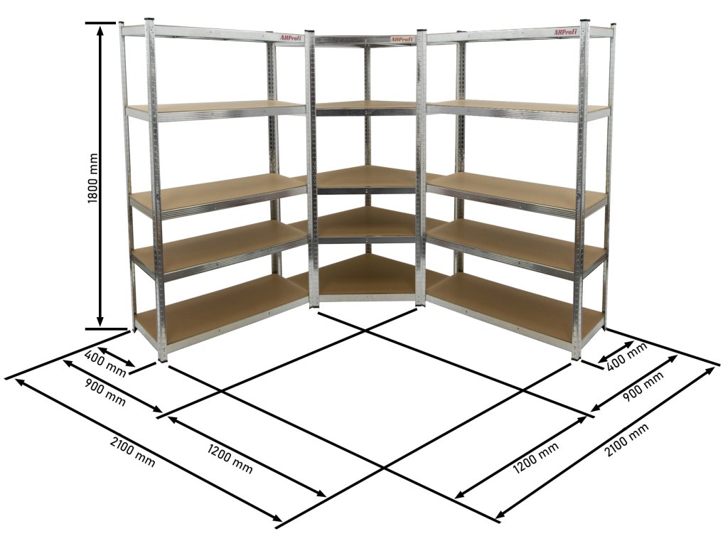 Rohový regálový systém STANDARD - 2100 x 2100 x 1800 mm, 3 díly