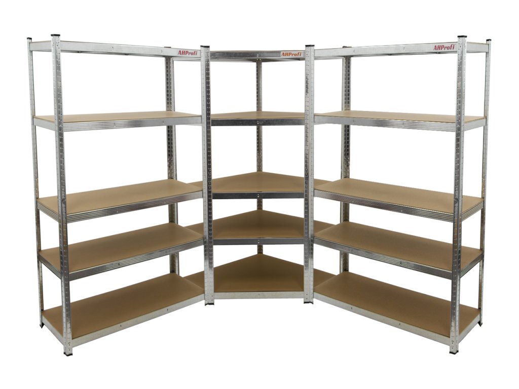 Jednou z největších výhod regálového systému je jeho prostorová flexibilita. Kombinace rohového regálu s úzkými nebo širokými regály vám umožní snadno sestavit kratší či delší rohovou policovou stěnu a tím maximálně využijete dostupný prostor.