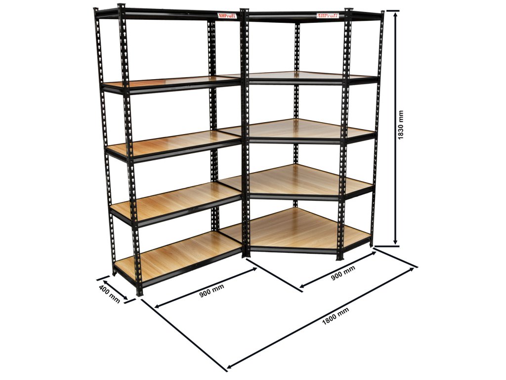 Jednou z největších výhod regálového systému je jeho prostorová flexibilita. Kombinace rohového regálu s úzkými nebo širokými regály vám umožní snadno sestavit kratší či delší rohovou policovou stěnu a tím maximálně využijete dostupný prostor.