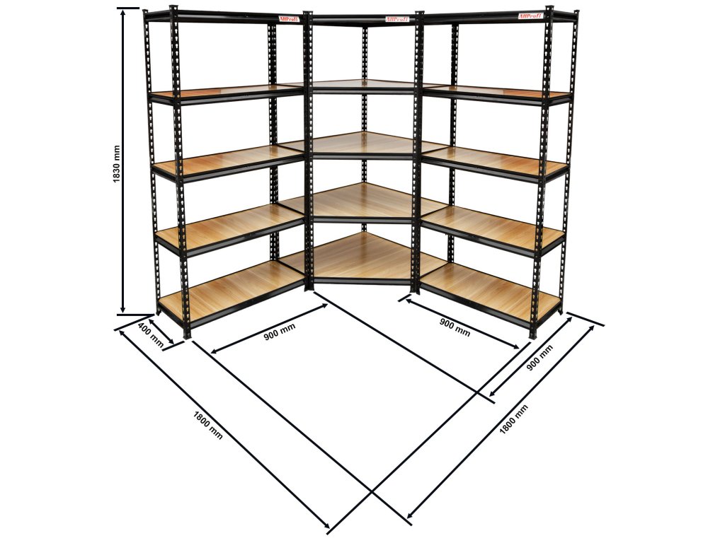 Rohový regálový systém STYLE - 1800 x 1800 x 1830 mm, 3 díly