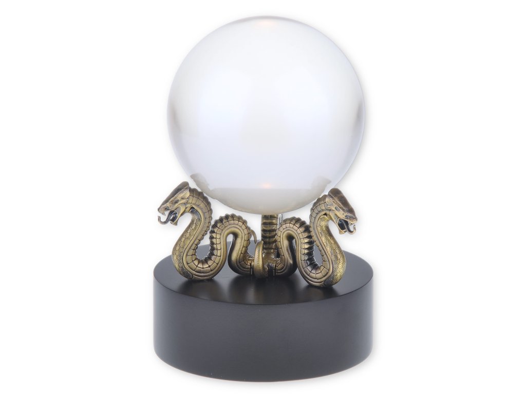 Dokonalá replika křišťálové koule (orakula) patřící profesorce a vědmě Sibyly Trelawneyové, která z ní vyvěštila porážku Lorda Voldemorta v Harrym Potterovi. Předlohu repliky můžeš vidět ve filmu Fénixův řád. Skleněná koule je vsazena mezi 3 bronzové bazilišky. Jaká tajemství a odpovědi nám asi odhalí tato překrásná mysteriózní dekorace? Ukázka Sibyliny křišťálové koule na YouTube od Franta Flinta - Collector and movie fan.Doplňkové parametry