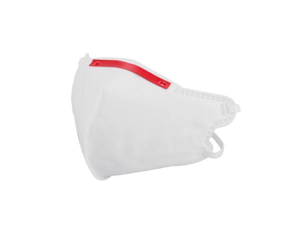 Skládaný respirátor, filtrační médium z polypropylenu, nastavitelná nosní svěrka, nastavitelná délka pomocí dvojitého gumového pásku, měkká nosní pěna, FFP2, CE EN 149.Doplňkové parametry