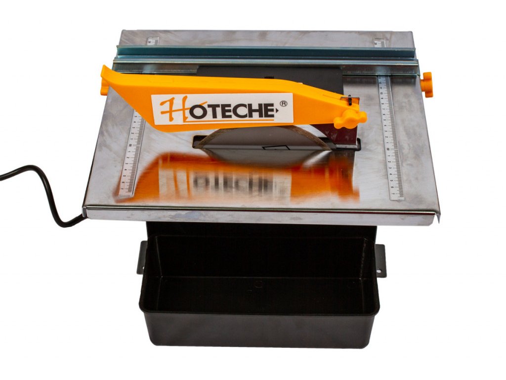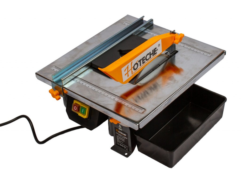 Řezačka obkladů značky Hoteche s průměrem řezného kotouče 180 mm pro řezání menších a středně velkých keramických, mramorových a žulových dlaždic a dlažeb.
