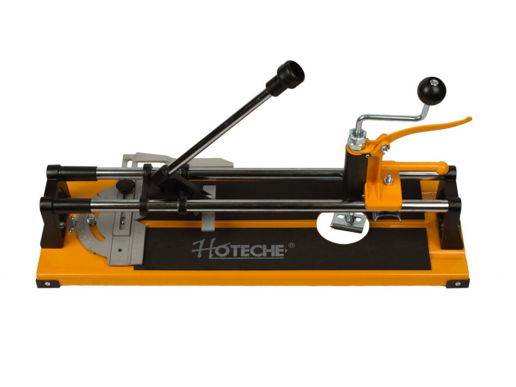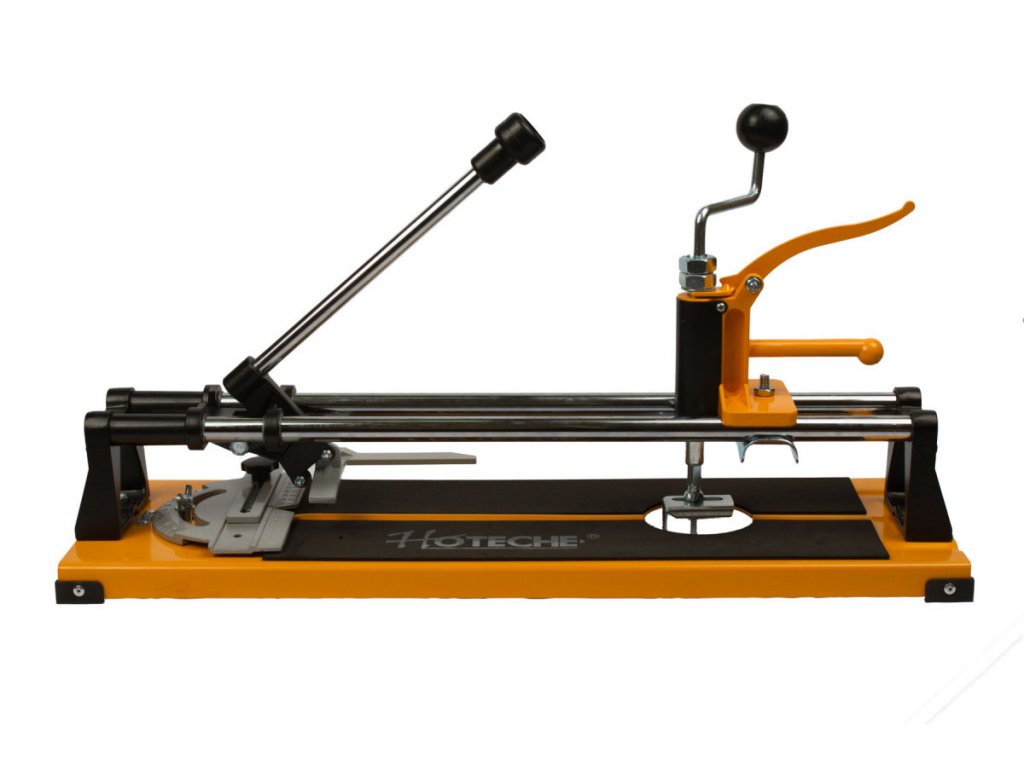 Řezačka na dlažbu a obklady značky Hoteche je schopna provádět řezy do max. délky 400 mm a hloubky až 12 mm. Řezačka zvládne paralelní řezy a úhlové řezy do 45°. Zároveň slouží jako vykružovák na obklady pro řezání otvorů. Jedná se o vhodnou volbu jak pro HOBBÍKy, tak i pro profíky.