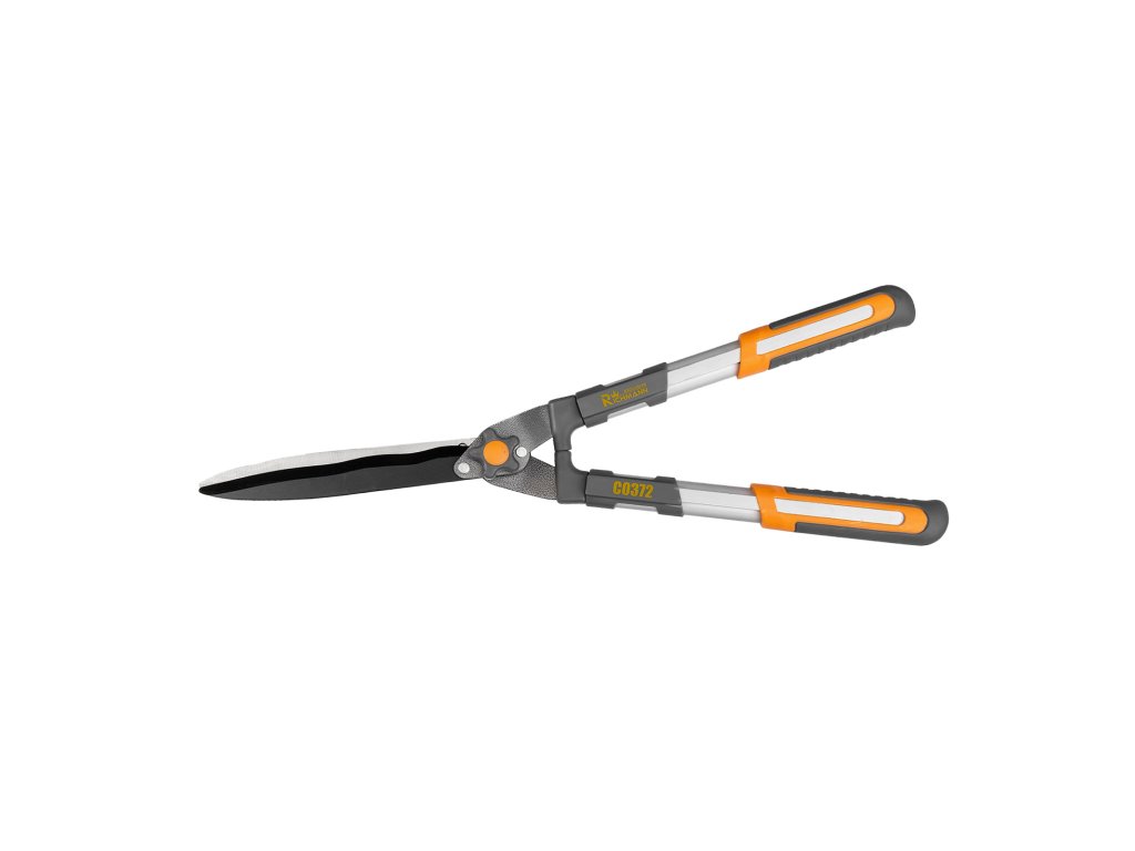 Nůžky o délce 590 mm jsou určeny pro tvarování, zastřihování a jemné úpravy živých plotů, keřů i popínavých rostlin. Vlnitý profil čepelí zabraňuje nechtěnému vyskočení větviček při střihání. Díky nastavitelnému středovému šroubu lze kdykoli snadno upravit vůli mezi čepeli. Čepele jsou vyrobeny z odolné oceli SK-5 a opatřeny teflonovou vrstvou (PTFE), která snižuje tření, chrání ostří a přispívá k plynulému střihu. Ergonomické a protiskluzové úchopy umožňují dlouhodobé stříhání s maximálním komfortem.Doplňkové parametry
