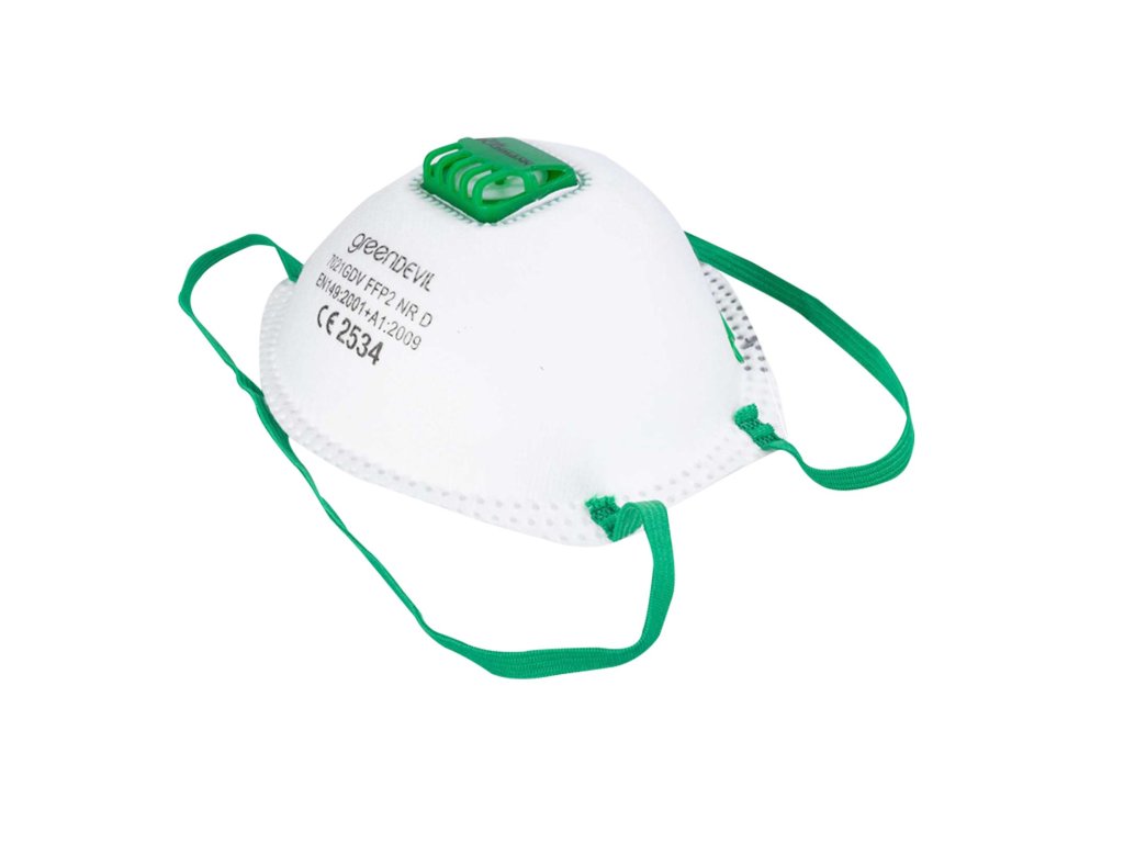 Tvarovaný respirátor s FFP2 ochranou proti pevným částicím, vodním a kapalným aeroslolům do 10 násobku NPK (nejvyšší přípustná koncentrace) látek v ovzduší.Doplňkové parametry