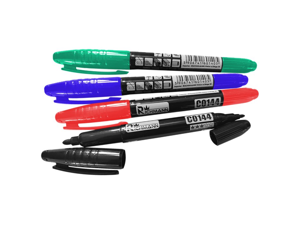 Sada popisovačů jsou ve čtyřech barvách (zelená, modrá, červená, černá). Typ popisovače je oboustranný - silný/tenký.Doplňkové parametry