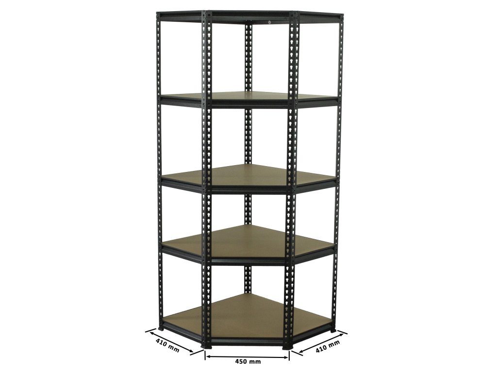 Rohový policový regál PREMIUM, 5 polic - 1830 x 730 x 730 mm - AH017