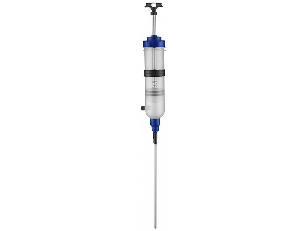 - Ruční plnička a odsávačka kapaliny AdBlue typu injekční stříkačka s obsahem zásobníku 1,5 l.