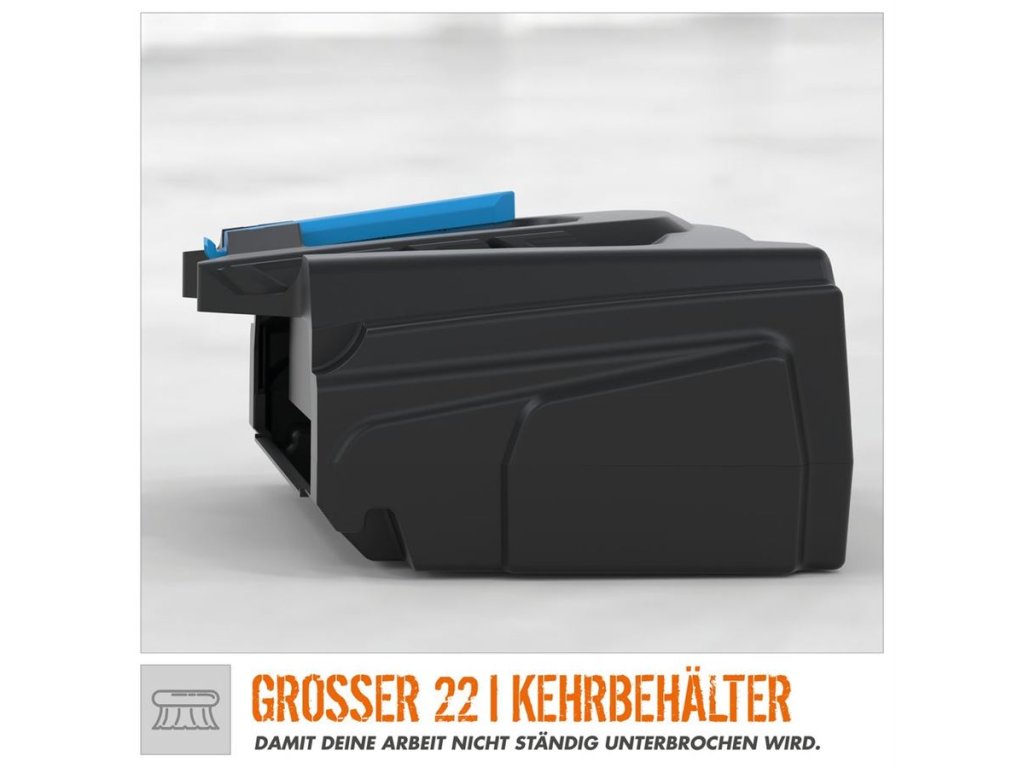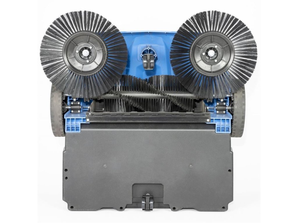 Boční (podávací) kartáče a centrální kartáčový válec, umožňují jak důkladné metení podél stěn a v rozích, tak zrychlené uklízení větších ploch bez námahy.