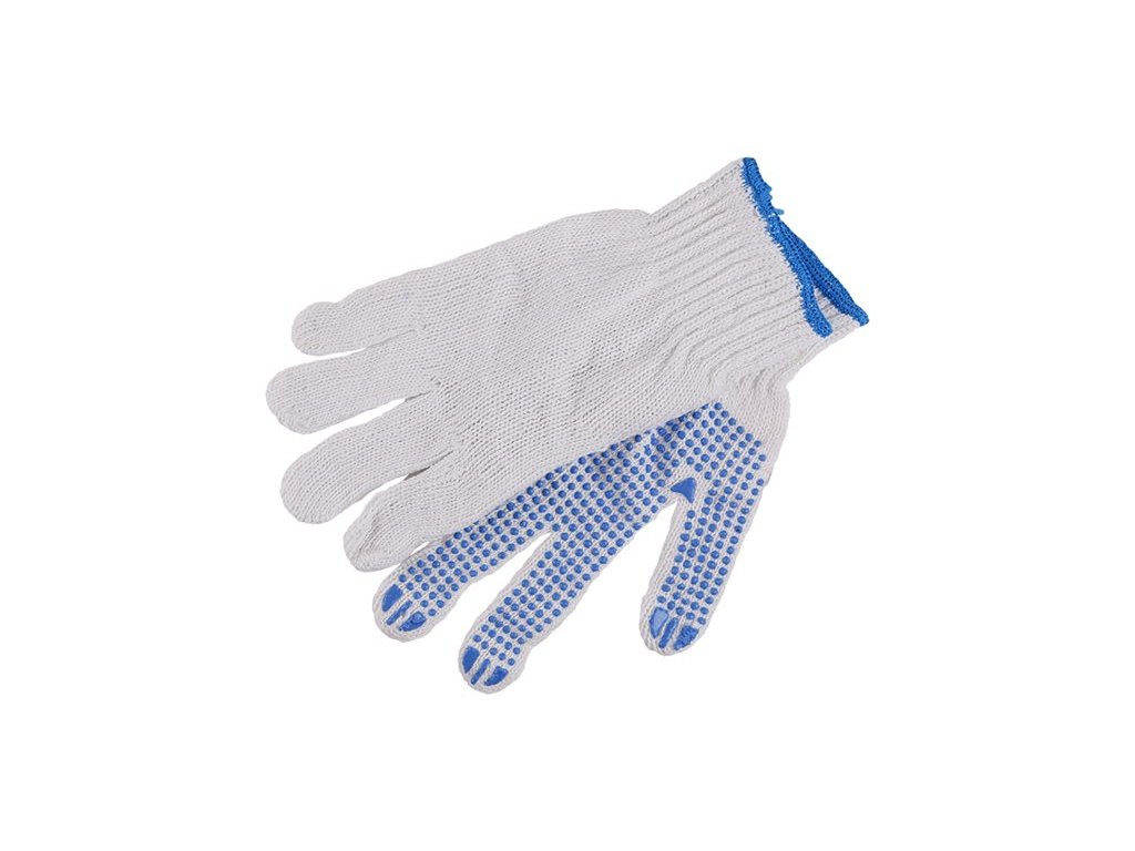 Úplet polyester/bavlna, dlaň pokryta PVC terčíky, pružný úplet na zápěstí.Doplňkové parametry