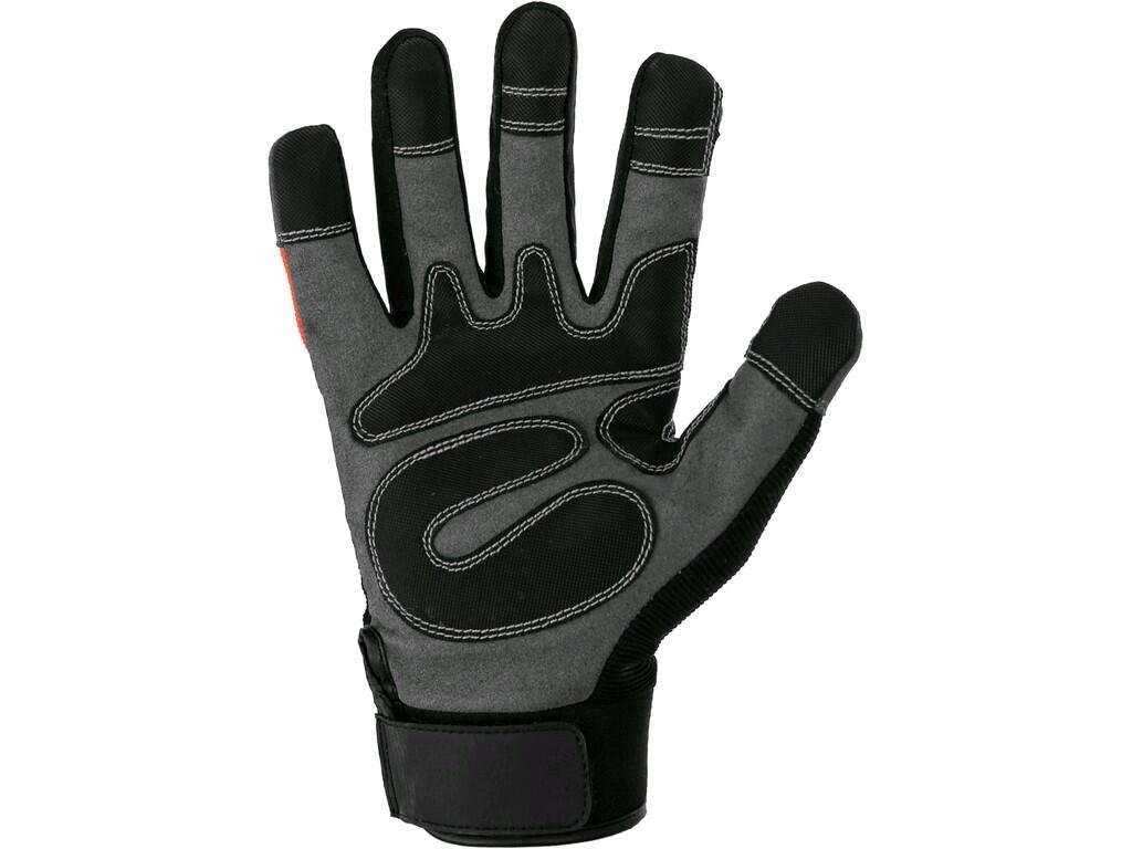 Kombinované rukavice s reflexním výpustkem na hřbetu, pohodlné a odolné vůči srážení, natahování a tvrdnutí. Polyuretanové výstelky v dlani pomáhají tlumit otřesy, nárazy a vibrace. Ve svrchní části prodyšný Spandex, v dlani syntetická kůže (mikrovlákno). Neoprenová manžeta se suchým zipem se snadno přizpůsobí zápěstí. Baleny s blistrem. Doporučené použití: logistika, lehký průmysl, hobby, řidiči.Doplňkové parametry