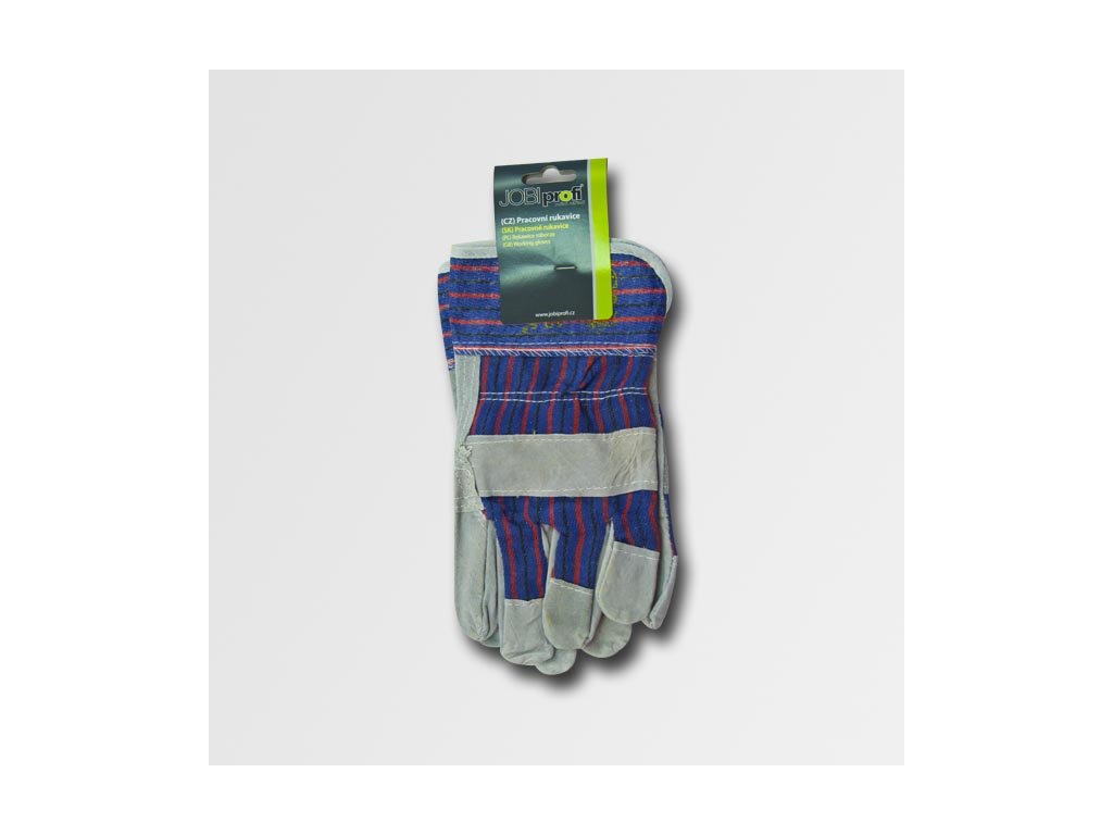 Kombinované rukavice,dlaň z šedé hovězí štípenky, vyztužená dlaň, hřbet a manžeta z pruhované bavlněné tkaniny, podšívka ve dlani.Doplňkové parametry