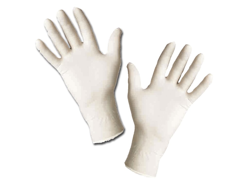 Jednorázové latexové rukavice, pudrované, balení po 100 ks, vhodné pro krátkodobý styk s potravinamiDoplňkové parametry