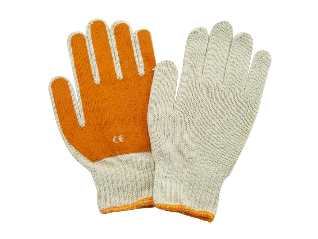 Bavlněné rukavice s pružným nápletem na zápěstí, polomáčené v barevném přírodním latexu.Doplňkové parametry