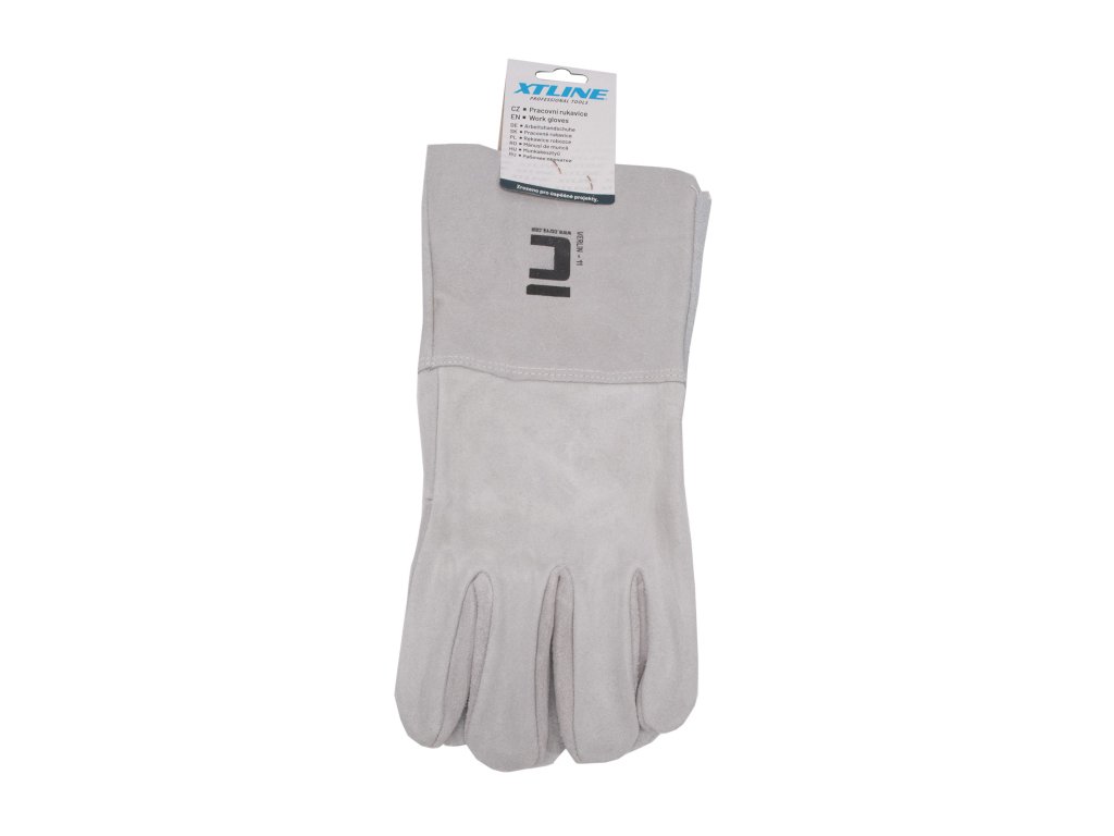 Celokožené rukavice z šedé hovězí štípenky, tuhá manžeta 15cm, bez podšívky – certifikát pro svářečské práce.Doplňkové parametry