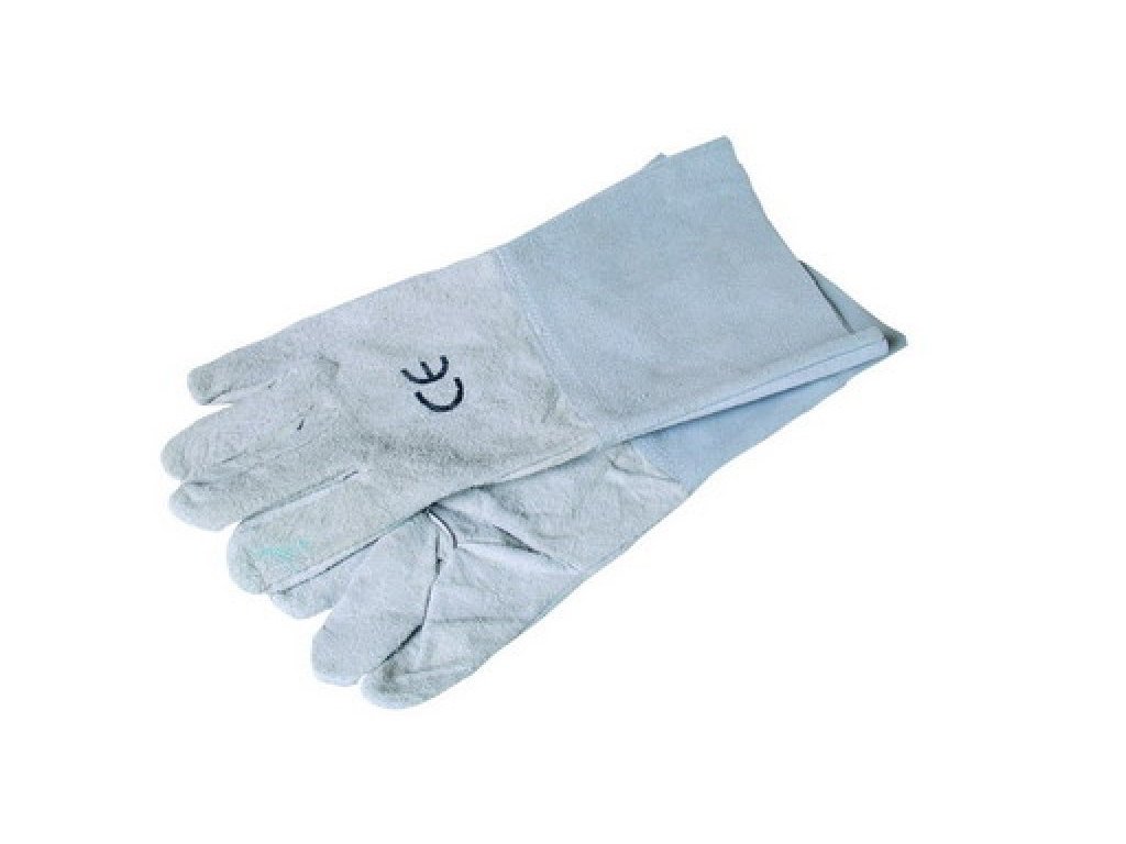 Rukavice z hovězí štípenky s manžetou 15cm, certifikováno pro svářeče CE EN 388 / CE EN 407.Doplňkové parametry