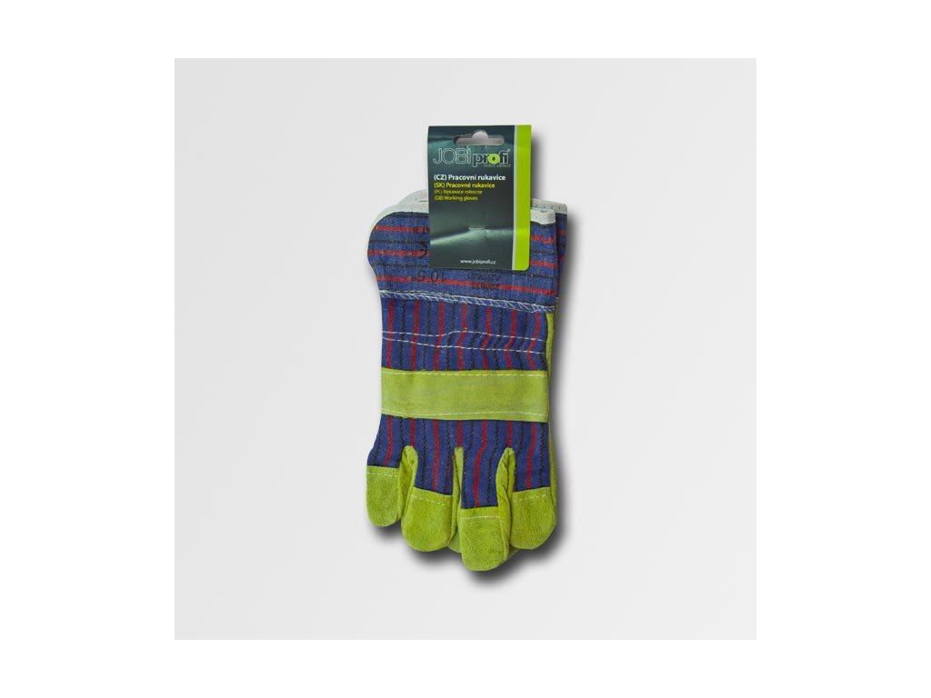 Kombinované pánské rukavice, dlaň ze žluté hovězí štípenky, s bílou tkaninou na hřbetu, podšívka ve dlani.Doplňkové parametry