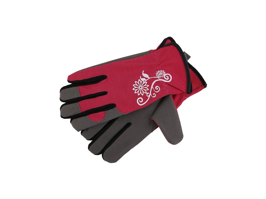 Rukavice speciálně vyvinuté pro zahradní práce z umělého semiše v dlani, hřbet rukavice je z elastické tkaniny Spandex, se stahovací gumičkou na zápěstí, ozdobný potisk. Velikost 7.Doplňkové parametry