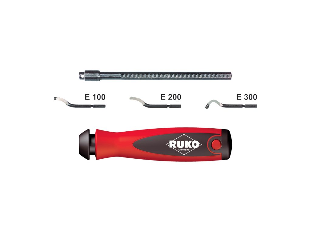 RUKO Odstraňovač otřepů, sada E, plastová rukojeť