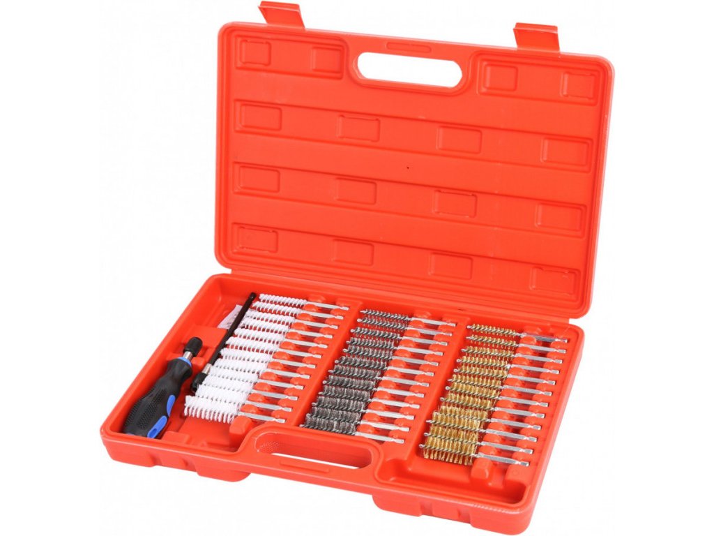 Sada 36 ks ocelových, nylonových a mosazných kartáčů o průměru 8 - 19 mm. Sada také obsahuje rukojeť s upínáním na bity a prodlužovací nástavec.